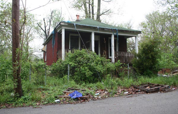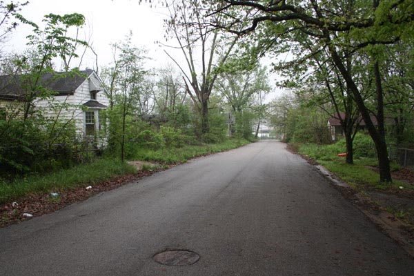 The most amazing street was Cherry Street, one that is nearly overgrown by trees and weeds. The street dead-ends at a forest -- part of the long-neglected Greenwood Cemetery.