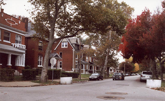 In spite of the decay on Delmar, the blocks to the north are surprisingly well kept. 5100 Cabanne is typical of the neighborhood. October 2002.