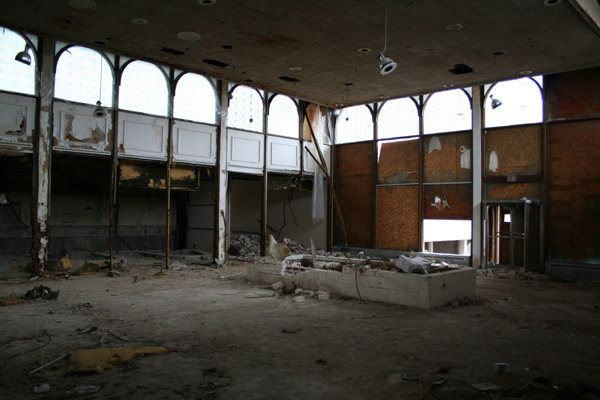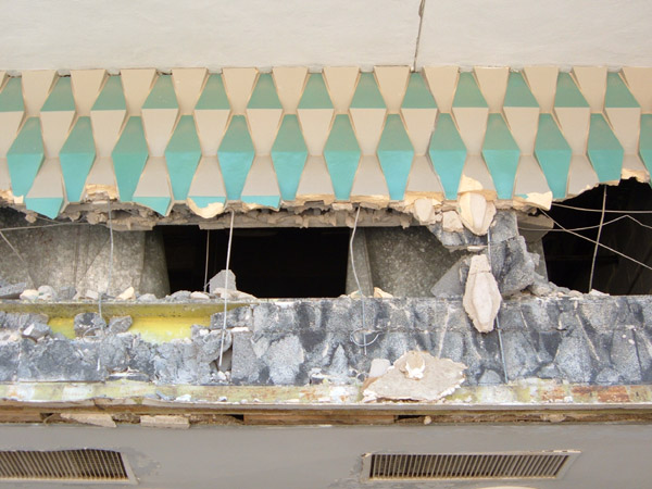 The Stix store is far and away the greatest loss. It is an elegant building: simple, well articulated, powerfully massed, trimmed with exotic (if somewhat dated) ceramic tile. The tile patterns are hypnotically complex in their endless repetion; their patterns change with the shifting sunlight through the day, and would be reason enough alone to argue for saving the building.