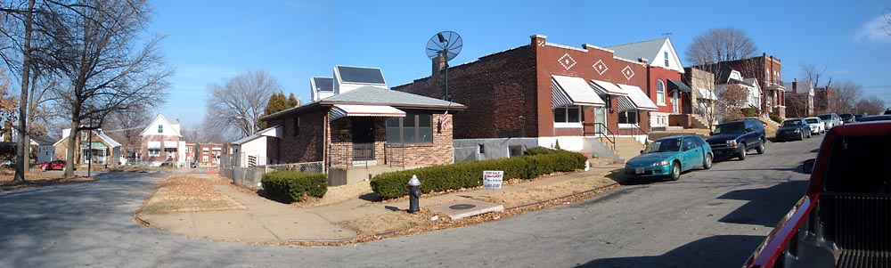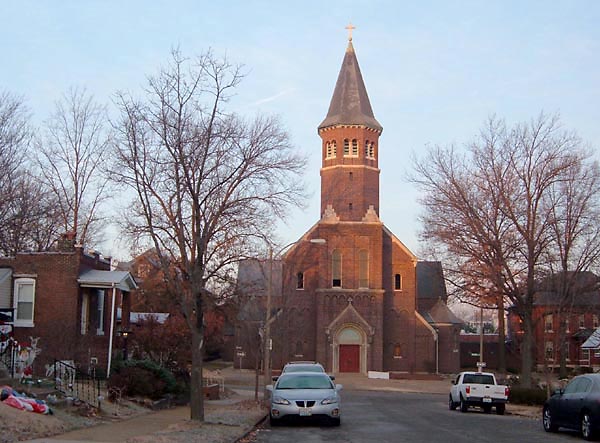 The church itself is not outstanding for ornament or style, though it does boast a healthy dose of St. Louis's characteristic ornamental brickwork. It is, however, thoughfully scaled to the small houses around it. It is a landmark among them, yet it does not overpower them. Everything about the church and the blocks around it are intimate, cozy and inviting.