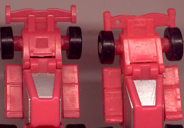 Probably the strangest thing about these toys is the tires -- they come in red, blue, purple, orange, and maybe some other colors I haven't seen yet too.