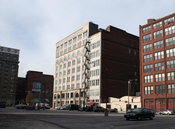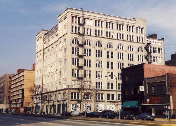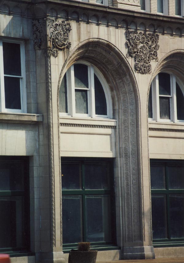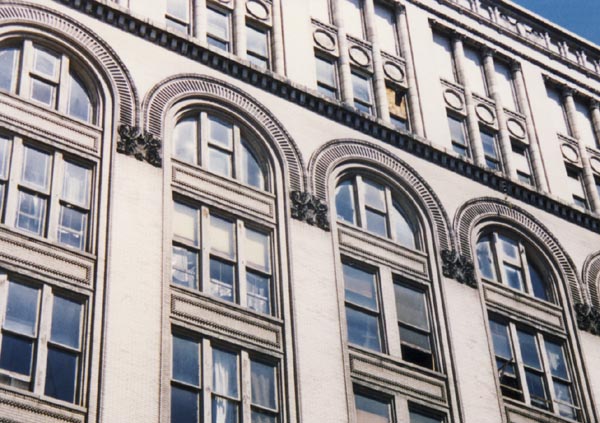 Clad in white glazed terra cotta and brick, this is one of the Avenue's most elegant and refined buildings. Sharply contrasting with its more brawny neighbors, it was intended to be part of a grand line of buildings facing the widened 12th Street, where the building's main facade is located.